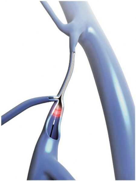 Лазер включается с определенными заранее установленными параметрами, а специальное устройство вытягивает световод с определенной скоростью через тот же прокол. Если все сделано правильно, лазерное воздействие мягко и аккуратно заваривает больную вену, убирая патологический сброс крови.